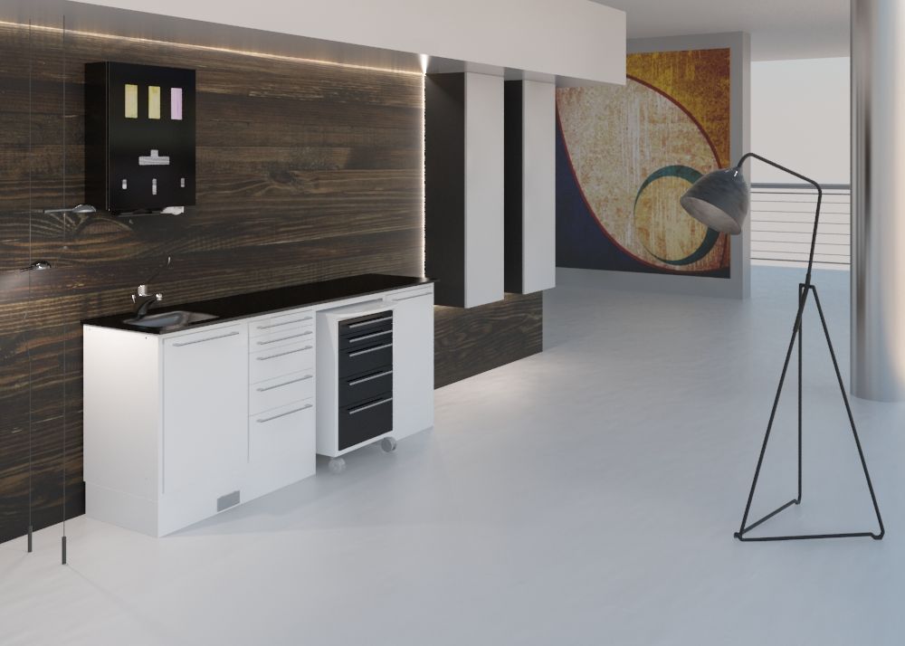 Grâce à l'agencement des meubles modulables, toutes les configurations sont envisageables pour réaliser un cabinet le plus fonctionnel possible.