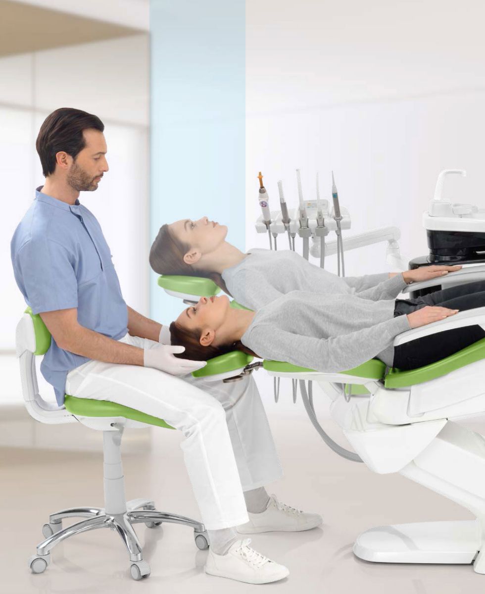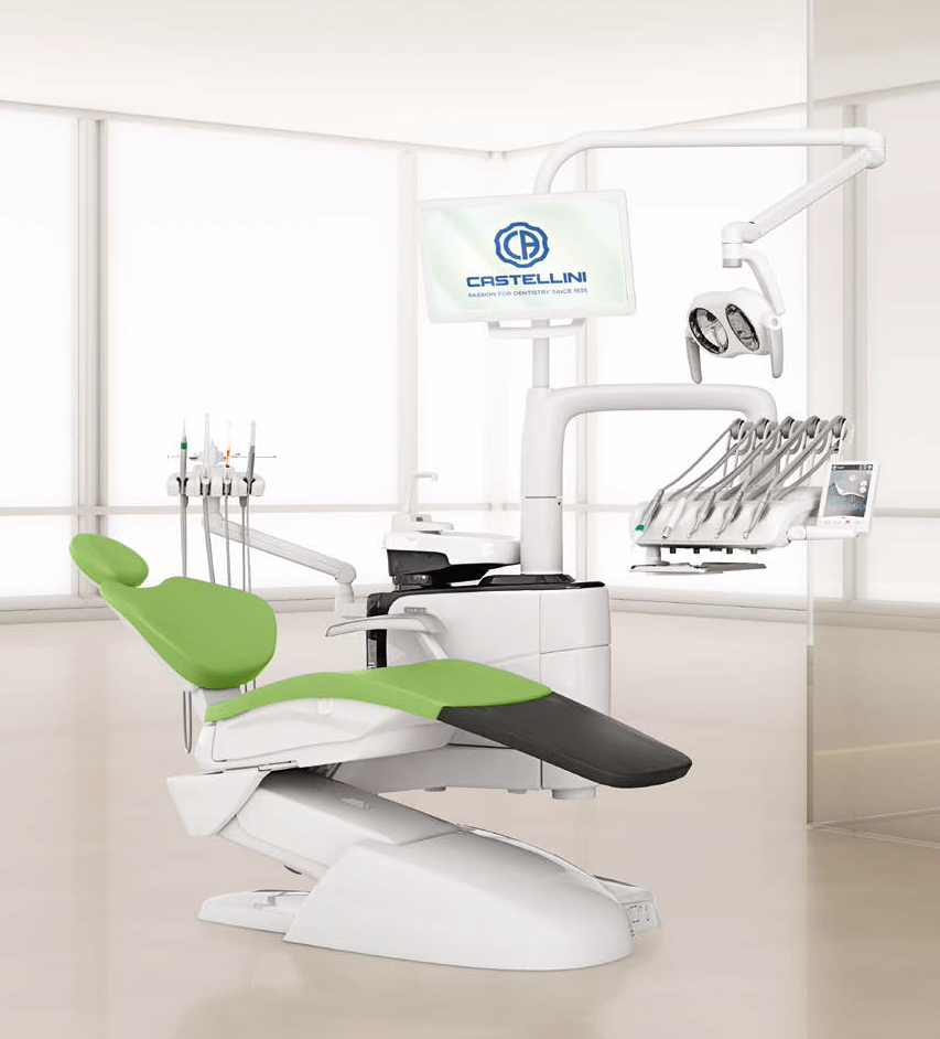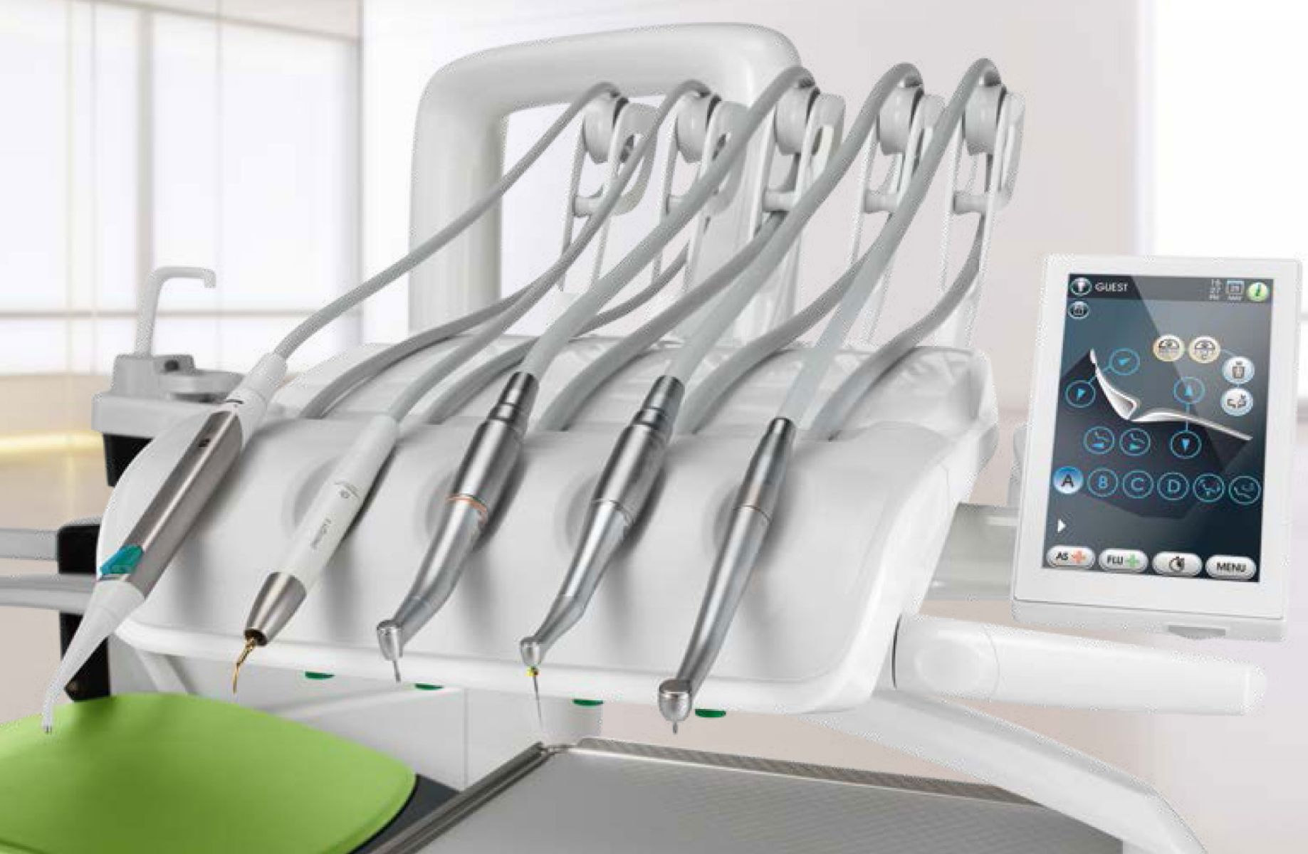 - Console de commandes « full touch »écran tactile de 7’’, pour commandes fauteuil, unit et crachoir.