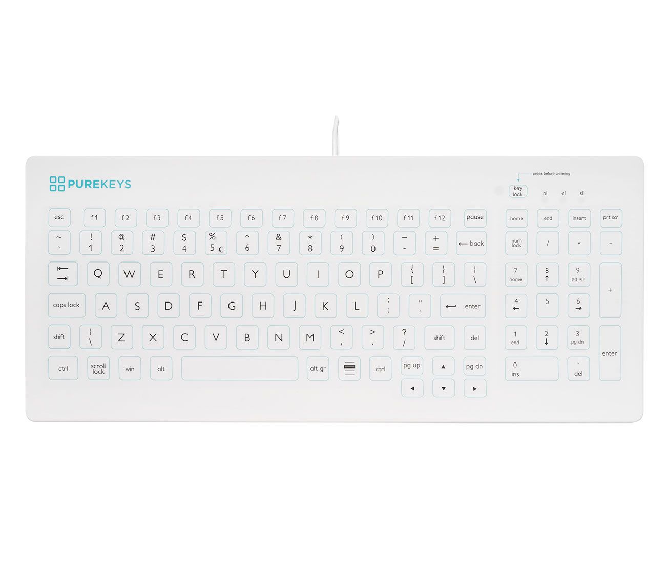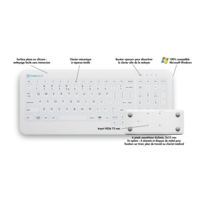 PROPRETÉ INÉGALÉE : Le clavier PUREKEYS permet un contrôle des infections et un confort maximal pour tous les professionnels du secteur médical. Son design à surface plate et lisse permet un nettoyage optimum. La haute qualité des touches situées sous la membrane silicone permet une réponse immédiate et optimale du clavier.