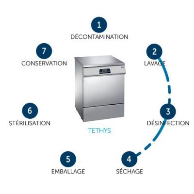 La norme EN 15883 demande de faire un contrôle complet des processus de thermo-désinfection effectués. Afin d’enregistrer les processus, les thermo-désinfecteurs Tethys peuvent être raccordés à une imprimante (en option) ou à un ordinateur pour fournir un rapport détaillé et complet de tous les paramètres du cycle de lavage