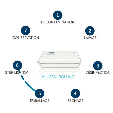 Pour la réalisation des sachets de stérilisation, Millseal Rolling peut être complétée par une lame de coupe. Installée en position horizontale sur la surface ou en position verticale (montage mural), cet instrument permet de couper les rouleaux de papier de la longueur voulue.